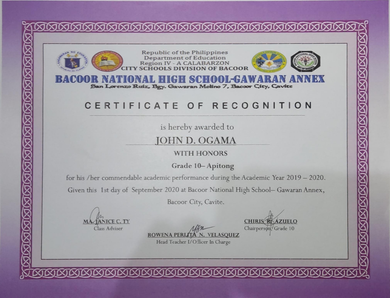 Shs In San Nicolas 3, Bacoor City, Cavite